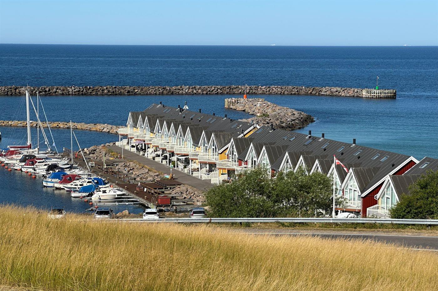 3,7Velindrettet sommerhus med en fantastisk beliggenhed og panoramaudsigt over Østersøen. Huset ligger på en grund med klipper og kaj. Stor, hævet træterrasse mod havet på husets ene side samt terrasse og træbalkon ud mod Hasles idylliske havneliv med