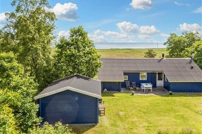 5,0I yderste række med panoramaudsigt til vandet ligger dette sommerhus på en naturgrund. Lys stue med store vinduer og udgang til terrassen ud mod vandet. Køkkenet ligger i åben forbindelse til stuen og har udgang til terrassen. Huset er indrettet med en
