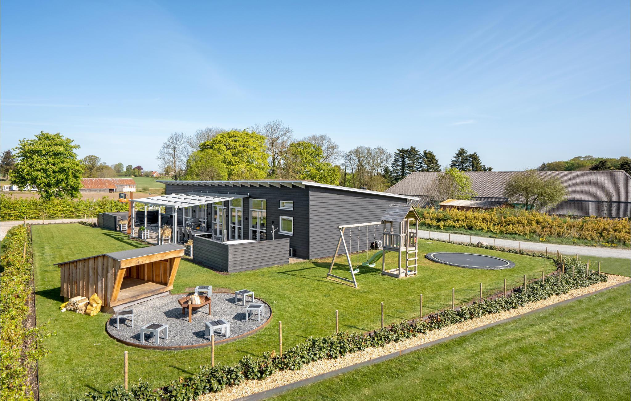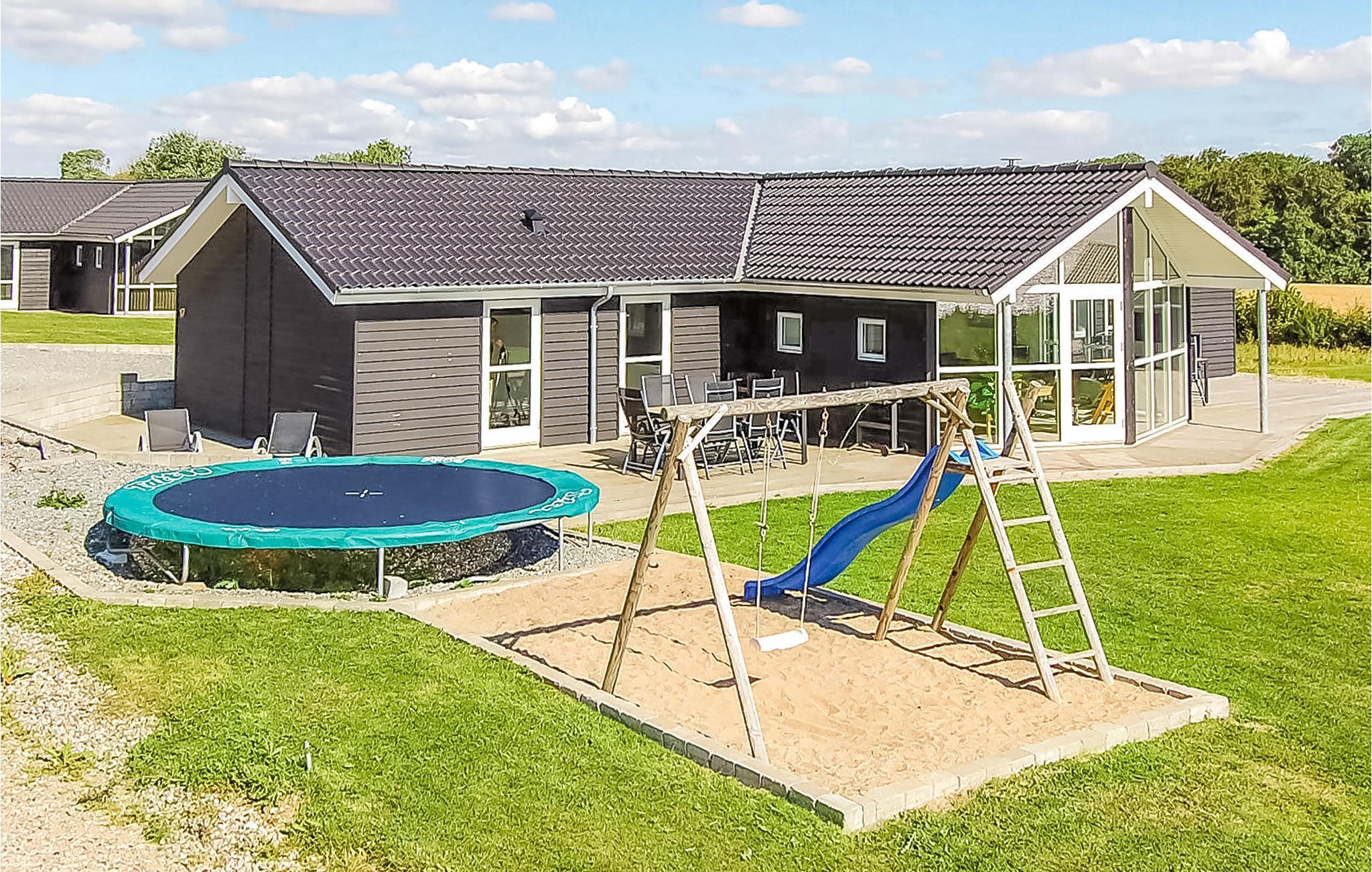 4,0Attraktivt luksusferiehus bygget i 2014 med energibesparende tiltag. Der er terrasse på næsten alle sider af huset, så både morgen- og aftensol kan nydes ude fra tidligt forår til sent efterår. Den store have er anlagt med græs, og der er gyngestativ og