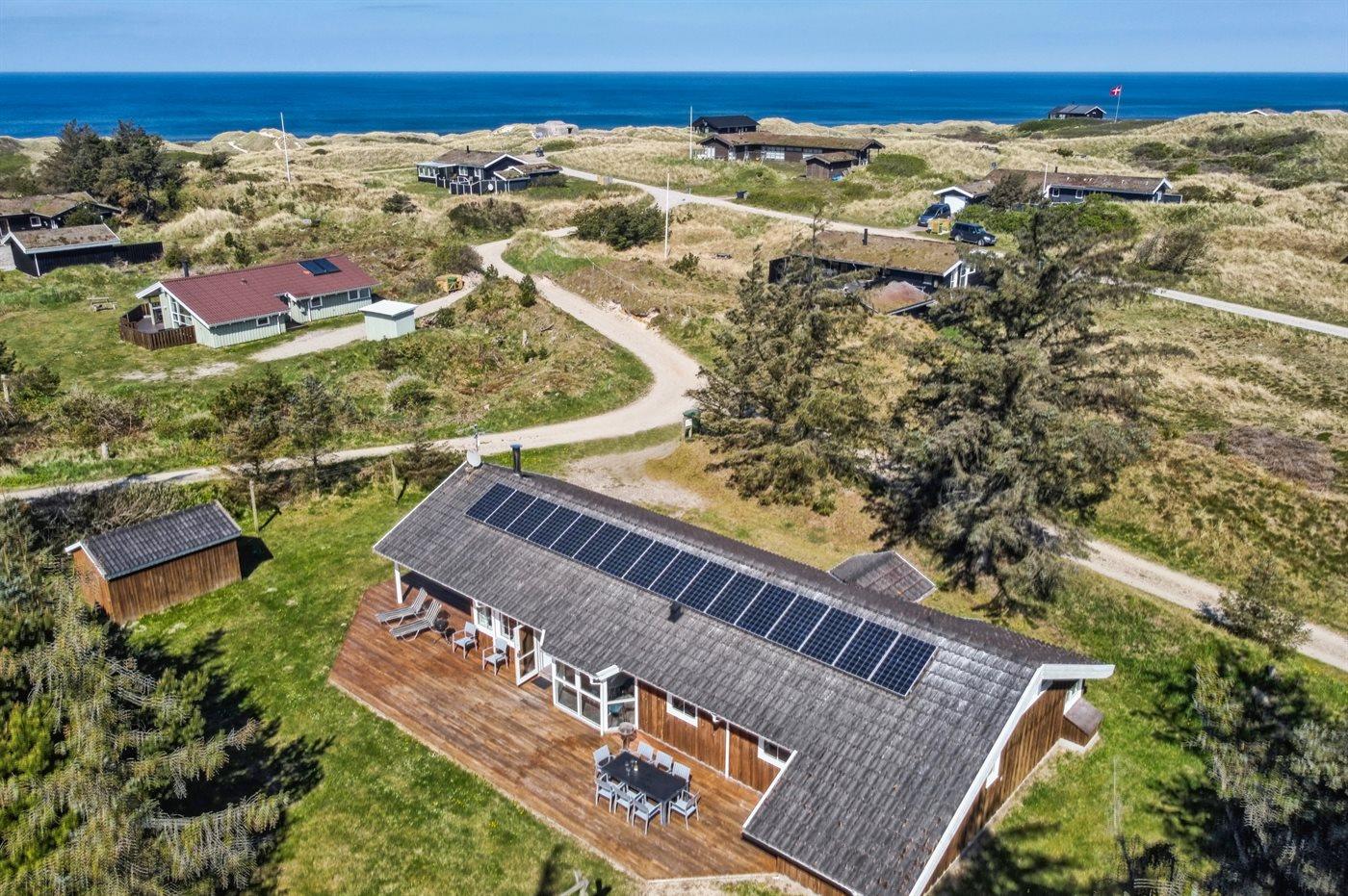 4,3Et skønt sommerhus bygget i forskudte niveauer, hvor man i stuen har en stor hems med gode muligheder for at børnene kan lege, mens de voksne hygger i stuen eller køkkenet. Huset har en unik beliggenhed i første klitrække og for enden af en blind vej, på en