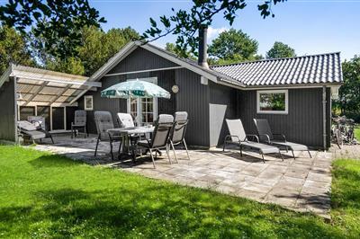 3,7Dette feriehus opført i træ ligger i et af øens største sommerhusområder i en smuk plantage, hvor man kan få mange dejlige naturoplevelser og hvor der er adgang til den ca. 10 km lange sandstrand som tiltrækker både børnefamilier og naturelskere. Følger man