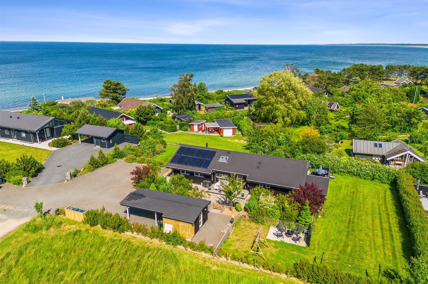 4,0Dette luksuriøse sommerhus med havudsigt, indendørs spa og sauna, vildmarksbad og aktivitetsrum med mere er beliggende i en nyere sommerhusudstykning med kun 100 meter til stranden. Huset ligger højt med udsigt fra blandt andet det store køkkenalrum, fra