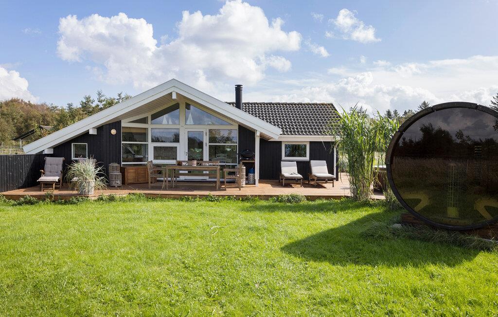 4,0Sommerhus fra 2024 med spabad og sauna beliggende i roligt sommerhusområde på Mors. Der er to badeværelser, det ene med spabad til to personer samt en dampkabine. Vaskemaskine og tørretumbler på badeværelse nr. 2. Der er tre værelser med dobbeltsenge og tre