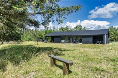 5,0Nybygget og spændende helårsisoleret sommerhus til 6 personer beliggende på en dejlig naturgrund, huset grænser op til et stort fredet skovområde med uforstyrret blik hertil. Huset ligger 675 meter fra stranden. Dejligt træhus et rummeligt hus på 125 m2 rundt