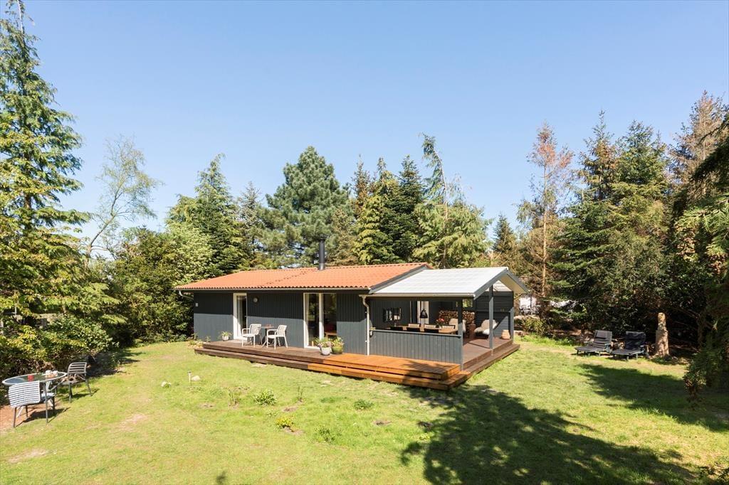 5,0Dette dejlige og lyst indrettede sommerhus ligger på en indhegnet grund med plads til udendørsaktiviteter. Til huset hører en stor og til dels overdækket terrasse med havemøbler. Indretning Sommerhuset egner sig til 4 personer. Ferieboligen er på 61 m² og