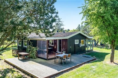 3,7Rummeligt sommerhus beliggende i rolige og naturskønne omgivelser i udkanten af et sommerhusområde nær vandet. Huset ligger på en blind vej, på en lukket grund med plads til hygge og leg, og med gode muligheder for udendørs afslapning på de skønne