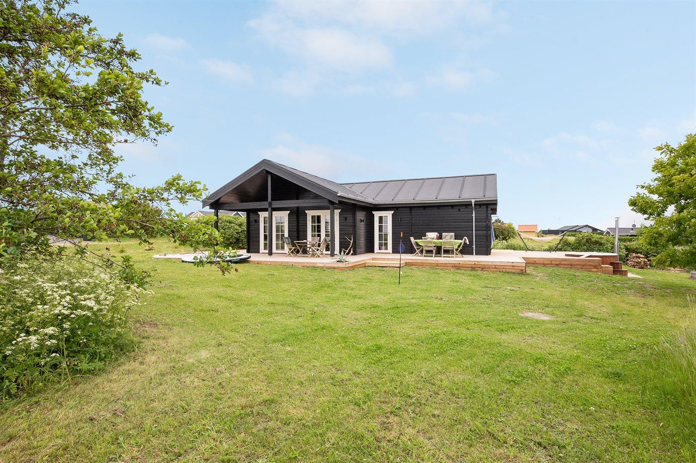 4,6Dejligt, nybygget (2016) sommerhus beliggende i rolige omgivelser med en dejlig landskabsudsigt. Huset har en stor, overdækket terrasse med havemøbler og grill. Huset ligger 2 minutters gang ad privat sti til en af Danmarks bedste og mest børnevenlige