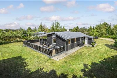 4,3Virkelig dejligt, velindrettet og særdeles velholdt sommerhus beliggende på åben naturgrund tæt på Holme Strand. På den store græsplæne er der masser af mulighed for leg og spil, og der er både gynge og sandkasse. Huset har stor, åben terrasse med havemøbler