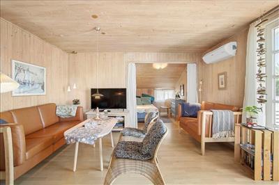 3,7Dette store, dejlige feriehus ligger i det hyggelige lille fiskerleje Lild Strand, hvor I stadig kan se spor fra et autentisk fiskermiljø. I huset forefindes en varmepumpe til opvarmning af pool og køkken/alrum, hvilket giver en stor besparelse af