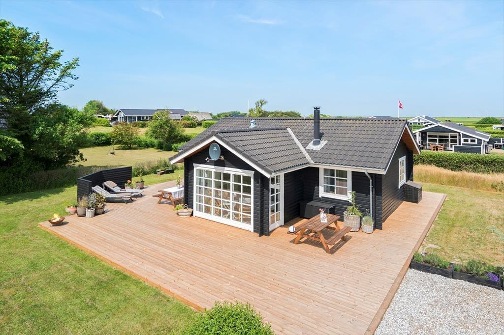 4,8På Skråningen 31 i naturskønne Toftum Bjerge byder dette fine sommerhus jer velkommen til en skøn ferie. Her kan I hygge jer indendørs nær stuens brændeovn eller i den solbeskinnede udestue – når I altså ikke nyder livet på terrassen eller ved den lokale