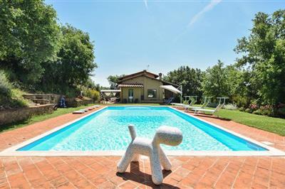 Meget rummeligt feriehus med pool til et afslappende ophold i Toscana. Glæd jer til denne fritliggende villa, som er placeret ud til skove og olivenlunde, har attraktiv, klassisk indretning og lægger op til en afslappende ferie med venner eller den udvidede