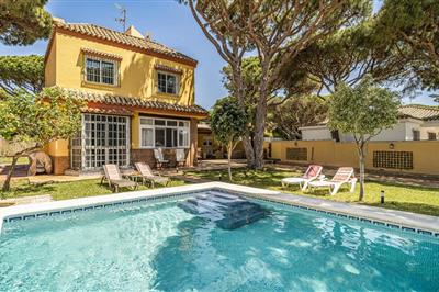 Dette traditionelle feriehus med pool byder jer velkommen få kilometer fra de smukke sandstrande ved den andalusiske Atlanterhavskyst. Hvad kunne være dejligere end at slappe af sammen med den store familie eller familievenner i dette rummelige og hyggelige