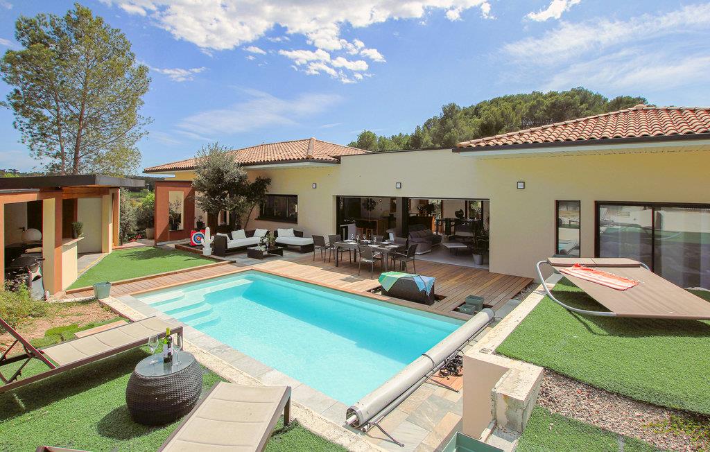 5,0Velkommen til dette moderne og rummelige feriehus med pool. Ved porten til den kreative og attraktive metropol Montpellier inviterer dette komfortable feriehus jer til at tilbringe jeres drømmeferie. Husets rummelige interiør er lavet af smukke materialer,