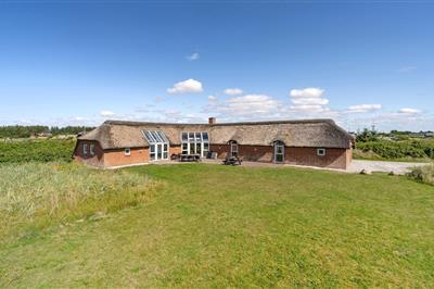 5,0Tæt på Vesterhavet, i et naturskønt område, ligger dette store sommerhus med plads til ikke mindre end 18 personer. Huset er indrettet med syv gode soveværelser samt hems, tre badeværelser, et stort og lyst køkken/alrum som ligger i forlængelse af stuen,