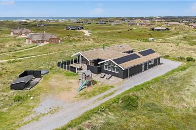 3,3Dejligt sommerhus med swimmingpool og aktivitetsrum beliggende på en stor naturgrund tæt på Vesterhavet. Bemærk at 4 af husets 12 sovepladser befinder sig på hemsen. Indretning Sommerhuset egner sig til 12 personer samt 1 barn op til 3 år. Ferieboligen er