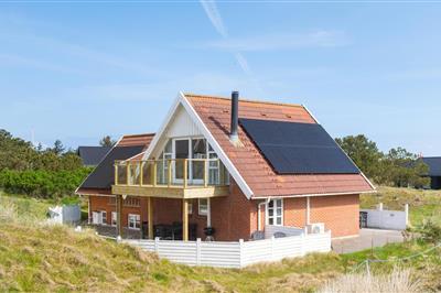 1,0Velkommen til dette smukke og store feriehus i klitlandskabet med swimmingpool og sauna. Nyd jeres ferie i dette komfortable feriehus med swimmingpool, spabad og sauna. Her kan I føle jer godt tilpas, og fra stuen på øverste etage kan I nyde udsigten over
