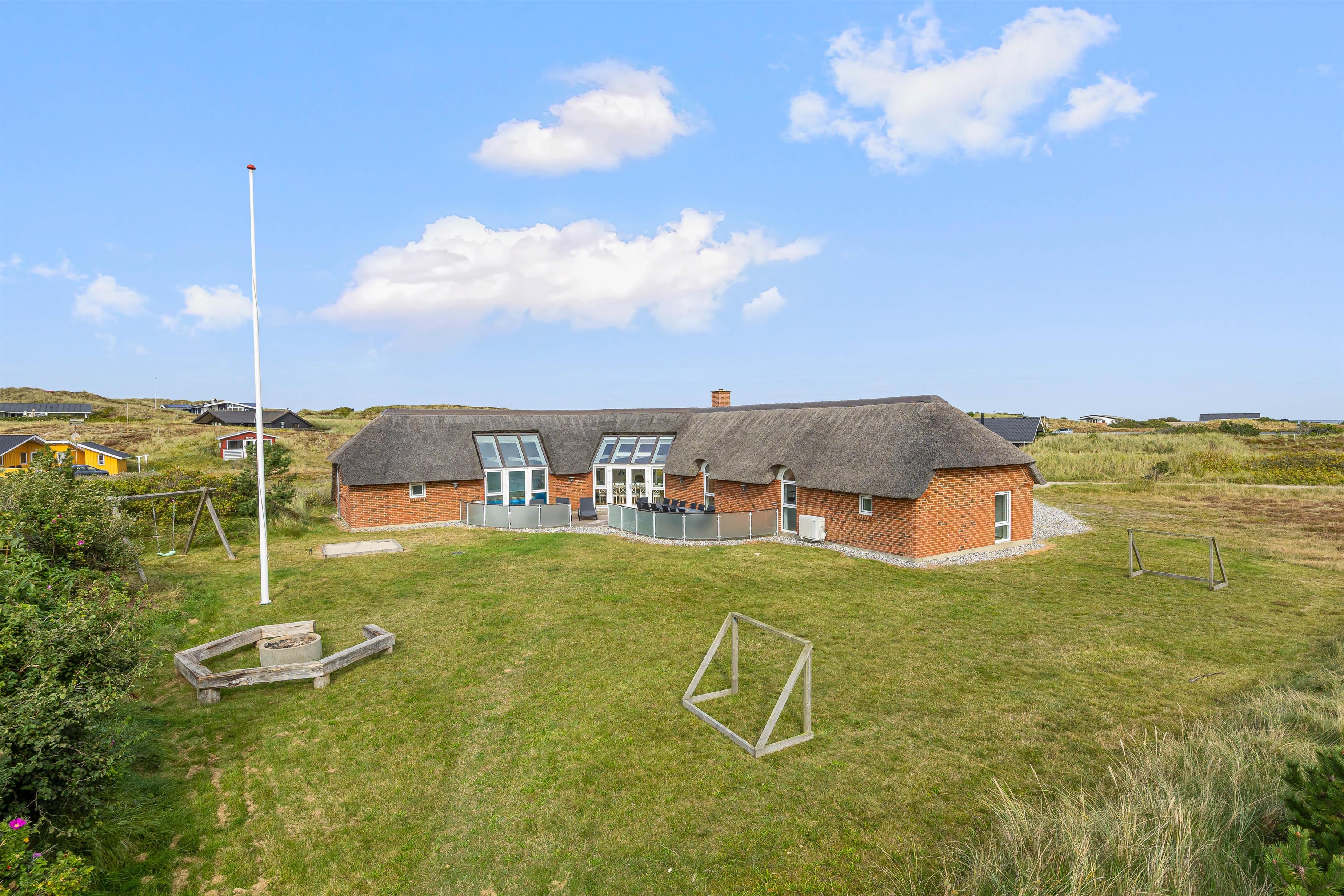 På Skodbjergevej 26 - bare 500 meter fra Vesterhavet - ligger poolhuset til 12 personer. Forkæl jer selv i spa og sauna, mens børnene boltrer sig i husets pool eller hygger sig ude med gynger, sandkasse eller fodboldspil på naturgrundens plæneareal. Flot