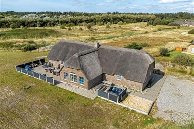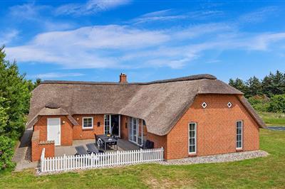 3,0Dette velholdte sommerhus i sten med stråtag, bygget i 1993, ligger på en meget stor og ugenert naturgrund, omgivet af træer og buske. Til huset hører en stor terrasse med havemøbler. Huset ligger i et af de skønne sommerhusområder langs den jyske Vestkyst.