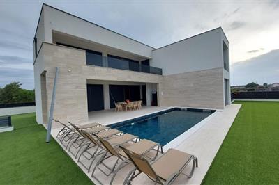 Dette luksuriøse feriehus fordelt på to etager, ligger i den rolige del af byen Nin. Huset er oplagt til den store familie eller venner der gerne vil holde ferie sammen, uden at give køb på privatsfæren. Etagerne er forbundet med en udendørs trappe, så hver