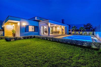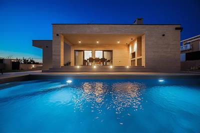 4,0Glæd jer til en afslappende ferie i dette luksuriøse feriehus med pool og havudsigt. Den moderne Villa Nin ligger i en lavvandet lagune og byder jer velkommen med et minimalistisk og eksklusivt interiør. Store vinduer tilbyder udsigt over det maleriske