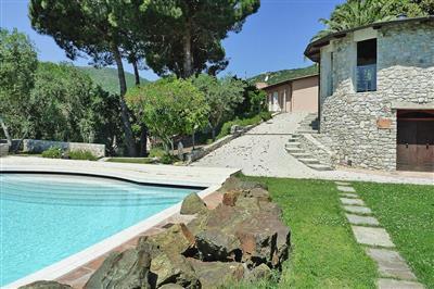 4,4Villa i Rio nell Elba med pool Bolig: Elegant, velholdt villa i landstedsstil, rolig beliggenhed omgivet af træer og planter på terrasseret naturgrund. Ved den fælles pool kan du nyde en smuk udsigt over middelalderbyen Rio nell" Elba, i den vilde og