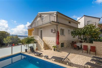 4,0Bag den lille ferieby Dramalj ligger dette dobbelthus med skøn udsigt, perfekt til afslappet ferie. Forfrisk jer i poolen og få en smuk solbrændt kulør på terrassen bag huset. Under terrassen er et rum til hyggelige timer omkring grillen. Huset strækker sig