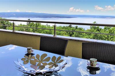 Omgivet af natur og oven for feriebyen Crikvenica ligger dette skønne feriehus med en herlig panoramaudsigt over byen, havet og landskabet. I stueetagen har I opholdsområdet og en overdækket terrasse med en mobil grill. På første sal ligger der fire