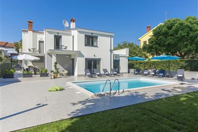 4,3Lejlighed i Porec tæt på Brijuni Øer Bolig: The villa i Porec har 4 soveværelse(r) og kapacitet til 10 person(er). Bolig på 336 m² komfortabel og er stort, ligger i første linje til strand, med udsigt til have og swimming pool. Er beliggende 400 m fra