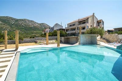 Der er lagt op til en herlig familieferie i Kroatien. I Cavtat ligger dette fantastisk flotte dobbelthus, som har plads til en større rejsegruppe. Her er der især gode rammer til to familier, der rejser sammen. Nyd den stilfulde og komfortable indretning,