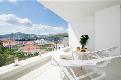 Luksuriøs, fornem og stilfuld ferievilla med panoramaudsigt over Trogir. Her kan I nyde et ophold i særklasse med venner eller familie i alle henseender. Dette hus byder på en tiltalende, moderne arkitektur samt møbler af høj kvalitet, så alene det at bo her
