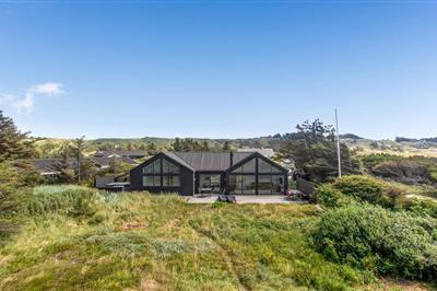 4,3Ved et af Danmarks smukkeste kystområder ligger dette feriehus. Ved den kuperede klitgrund er der nedkørsel direkte til stranden. Huset falder godt ind i naturen, da det er bygget af træ og har stråtag. Den store poolafdeling indeholder en stor swimmingpool