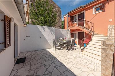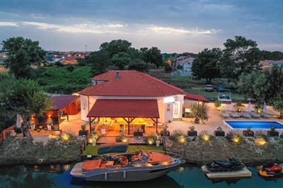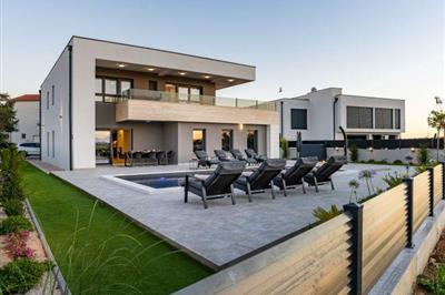 Dette luksuriøse feriehus fordelt på to etager, ligger i den rolige del af byen Nin. Huset er oplagt til den store familie eller venner der gerne vil holde ferie sammen, uden at give køb på privatsfæren. Etagerne er forbundet med en udendørs trappe, så hver