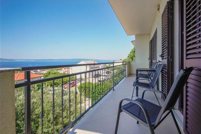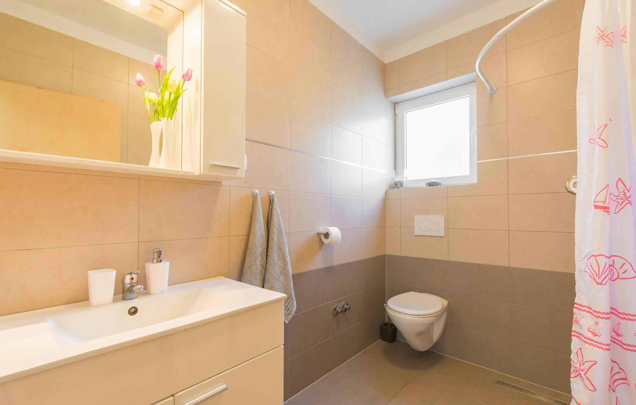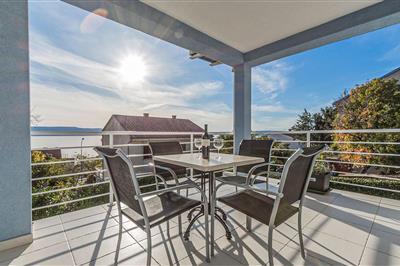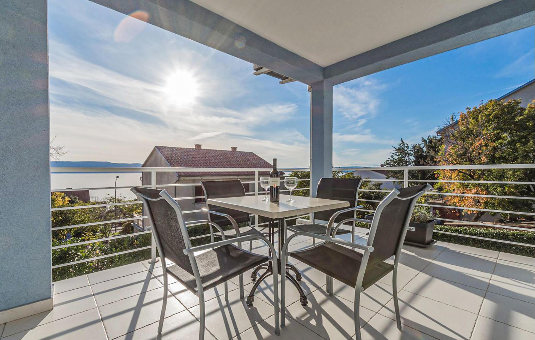 I nærhedene af Novi Vinodolski ligger denne fint indrettede halvdel af et deobbelthus, som breder sig over to etager. I stueetagen ligger køkkenet med opholdsstue og et ekstra toilet, mens der på første sal ligger soveværelser og badeværelse. Terrasserne