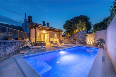 4,0Dette feriehus særlige fordele er poolen og beliggenheden med skøn udsigt ud over havet. Det ligger over byen Novi Vinodolski og er fordelt på tre etager, der er forbundet med udendørs trapper. Til her etage hører der enten terrasse eller balkon, der er vent