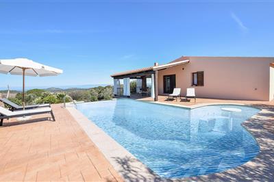 Skøn villa med egen privat pool og en betagende havudsigt der ligger i den eksklusive badeby Porto Rotondo, som er et af de mest populære feriemål på Sardinien, med de skønne strande langs Costa Smeralda på Nordkysten. Huset ligger i en stor have der er