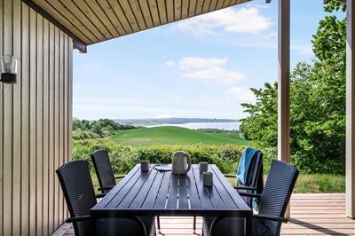 4,7Dette nye og meget rummelige feriehus er beliggende på opvokset naturgrund i det smukke og rolige område ud til Begtrup Vig. Huset er omgivet af en træterrasse, hvis sydvendte del er overdækket, med gode havemøbler, liggestole, parasol og grill. Et virkelig