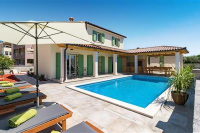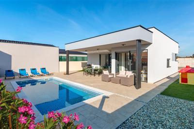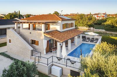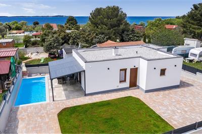 5,0Dejligt feriehus med attraktiv beliggenhed og kort afstand til havet. Huset har en lækker tagterrasse med jacuzzi, udendørsmøbler og en fortryllende udsigt til havet og Brijuni-øgruppen. Huset har et moderne design og er udstyret med alle nødvendige hårde