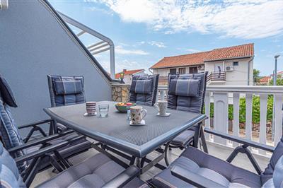 I den romantiske lille kystby Pirovac ligger denne ssssflot og funktionelt indrettede ferieljlighed med altan. Lejligheden ligger på 1. sal og på den indhegnede grund har I en fælles grill. Nyd mange dejlige badetimer ved de smukke badestrande og bugter, der