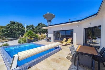 Dette rummelige feriehus med pool byder velkommen få minutters kørsel fra den kilometerlange sandstrand. Kom med jeres udvidede familie eller en familie af venner i dette skønne og moderne feriehus, som byder jer velkommen med komfort og lyse værelser. Glæd