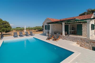 Dette skønne og moderne indrettede feriehus, ligger i rolige omgivelser nær byen Postira på øen Brac, et rigtigt ferieparadis til jer der vil glemme alt om den travle hverdag og stress. Huset ligger på en stor grund med en velplejet olivenlund og har en