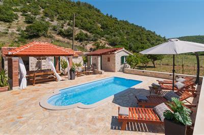 Kun et stenkast fra den mest populære sandstrand i Lovrecina-bugten på øen Brac ligger denne skønne villa. Feriehuset stammer fra det 12. århundrede, og ved renoveringen har man bevaret den originale stil i sten og træ. I stueetagen ligger køkkenet med en
