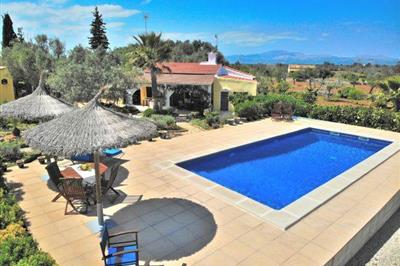 4,4Landhus i Santa Margalida med Pool Bolig: Efter en dag på stranden kan du nyde en forfriskende svømmetur i den private 7x4m klorpool, med dybder fra 1 til 1,7 meter, eller slappe af på en af de fem liggestole. Du kan også nyde lækre grillretter under
