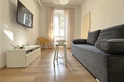 4,2Lejlighed i Kroatien ved Adriaterhavet Layout: Stueetage: (Stue(Fjernsyn(fladskærm, parabol), sofahjørne), Køkken(spisebord, elkedel, brødrister, komfur, kaffemaskine, ovn, mikrobølgeovn, opvaskemaskine , køle-fryseskab, , Wine glasses), Soveværelse med