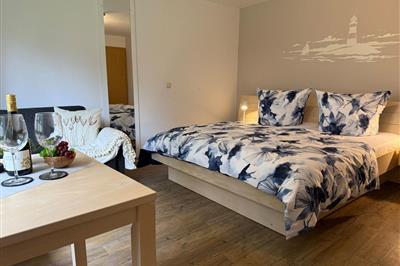 Ferielejlighed med terrasse i Dierhagen Bolig: Denne eksklusive lejlighed har plads til op til to personer – ideel til par eller solorejsende, der værdsætter komfort og ro. Det separate soveværelse sikrer privatliv, mens den hyggelige opholdsstue inviterer