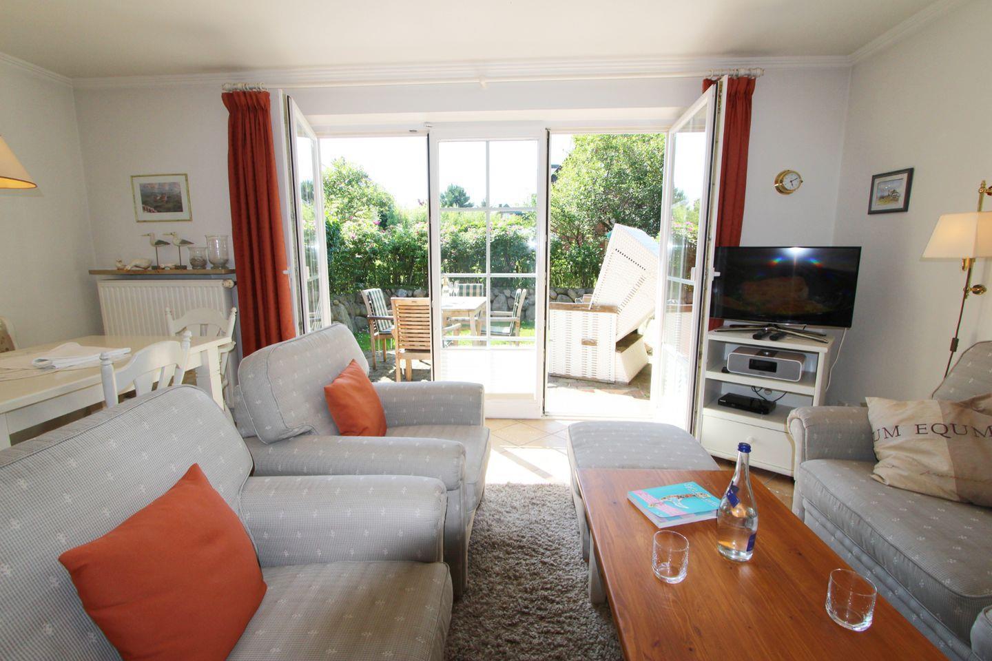 Süderhof Lejlighed 3 Bolig: Den kærligt og komfortabelt møblerede lejlighed ligger i stueetagen i ét plan og tilbyder alt, hvad du behøver for at slappe af og koble fra hverdagens travlhed. Stuen har en behagelig sofa, to hyggelige lænestole og en