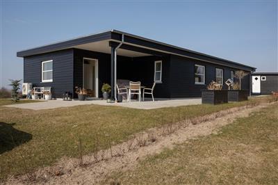 4,3Virkelig dejligt, velindrettet og særdeles velholdt sommerhus beliggende på åben naturgrund tæt på Holme Strand. På den store græsplæne er der masser af mulighed for leg og spil, og der er både trampoling, gynge og sandkasse. Huset har stor, åben terrasse med