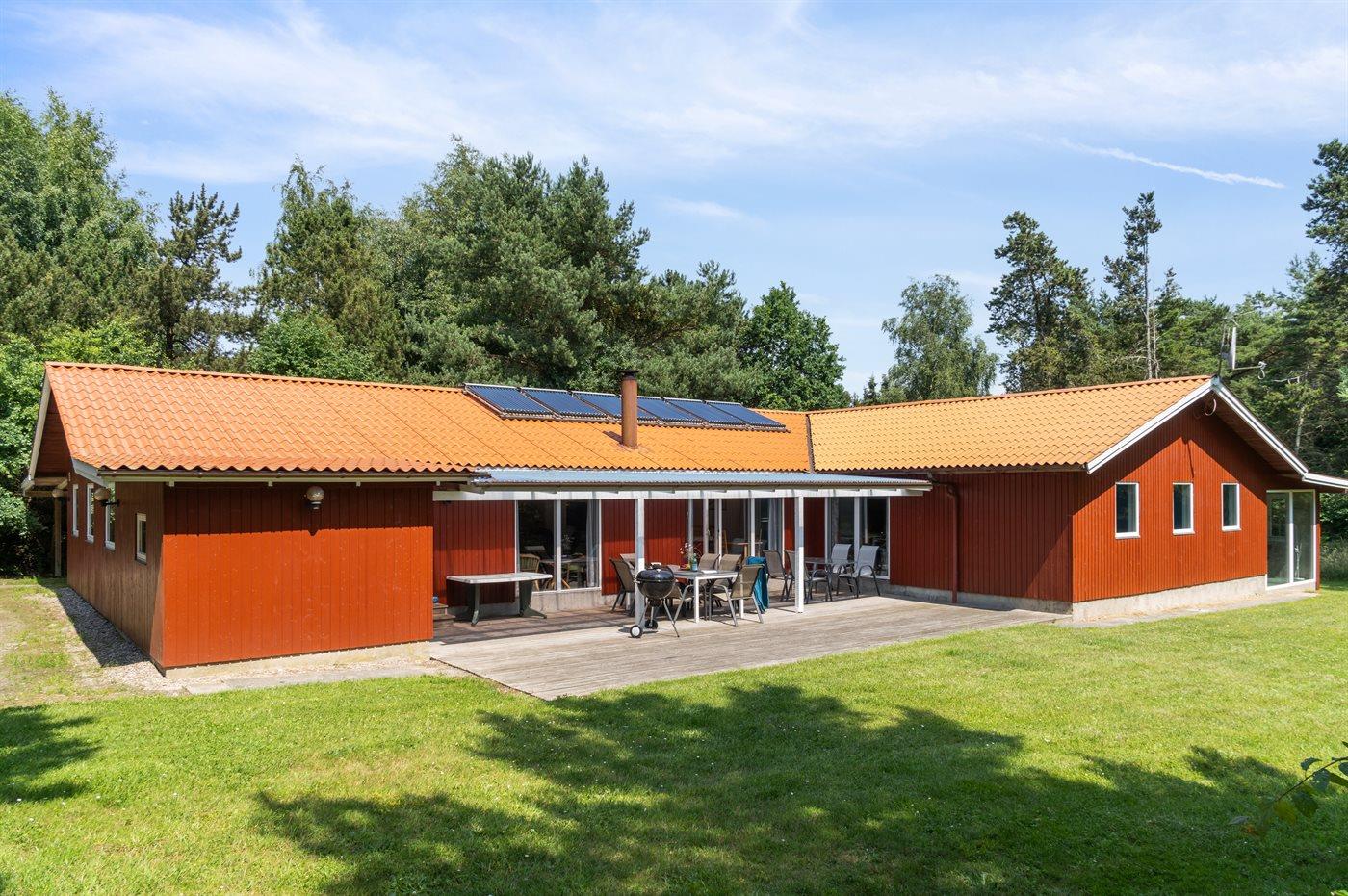 3,6Ønsker I en behagelig ferie sammen med familien eller vennerne, er muligheden her. Vi kan tilbyde dette ældre sommerhus i træ bygget i 1990. Huset indeholder indendørs pool, spa og sauna og ligger på en stor, lukket naturgrund kun 500 m fra en af