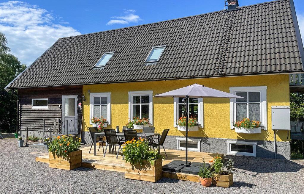 Oplev ren afslapning og natur i dette rummelige feriehus med mange faciliteter. Denne rummelige hytte, beliggende i roen i de svenske skove, tilbyder jer en vidunderlig pause fra hverdagen. På verandaen kan I nyde udsigten over baghaven og den