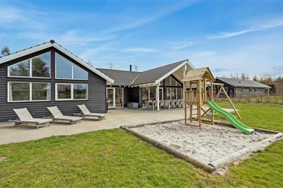 4,2Velindrettet sommerhus ved Ahl Strand med swimmingpool og aktivitetsrum der ganske enkelt rummer alt, hvad hjertet kan begære af aktivitets-og udfoldelsesmuligheder. Husets poolafdeling indeholder både stor swimmingpool, vandrutschebane, stor indbygget spabad