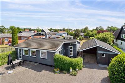 5,0Feriehus med rolig og attraktiv beliggenhed midt på Balka - nær den børnevenlige sandstrand med livreddertårn på stranden i sæsonen. Huset fremstår pænt og nydeligt med en større grund, der er omkranset af hæk og hegn. Indvendig er sommerhuset lyst med hvide